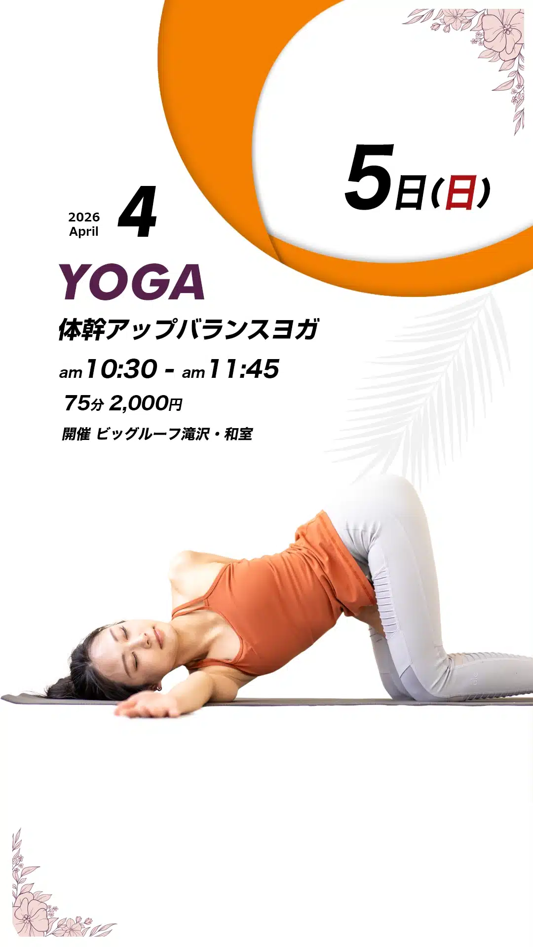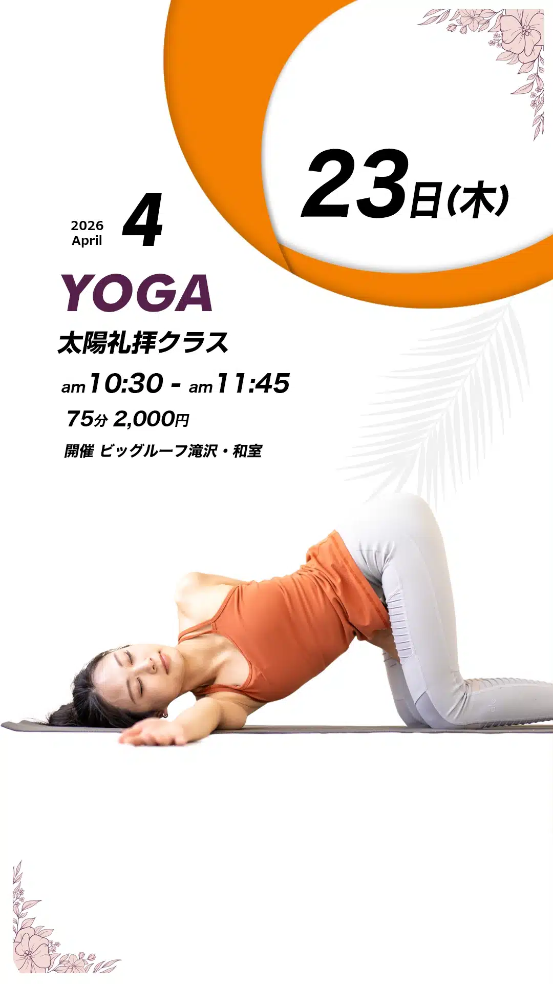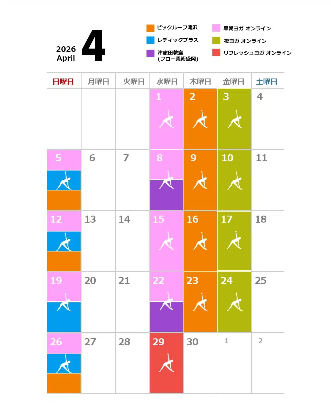 4月のヨガレッスンスケジュールになります