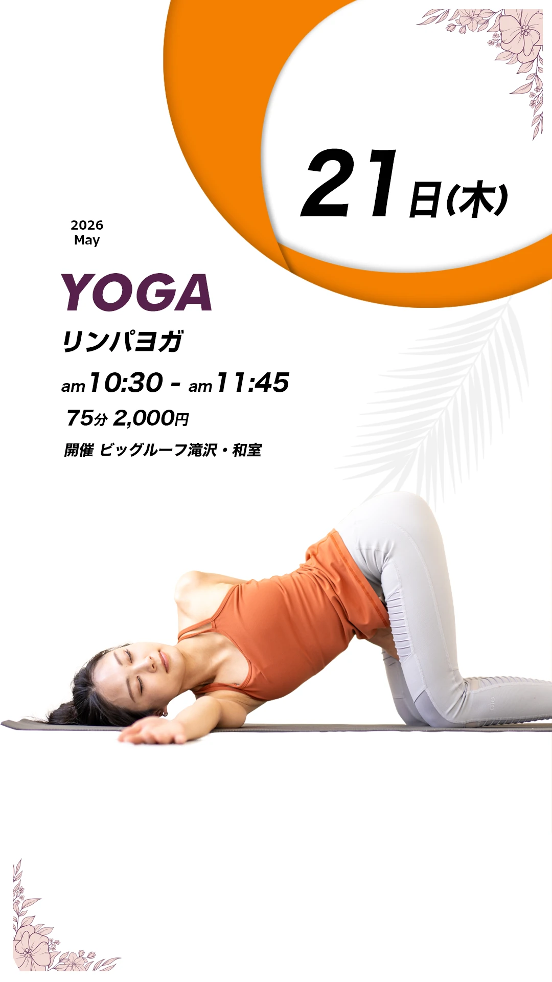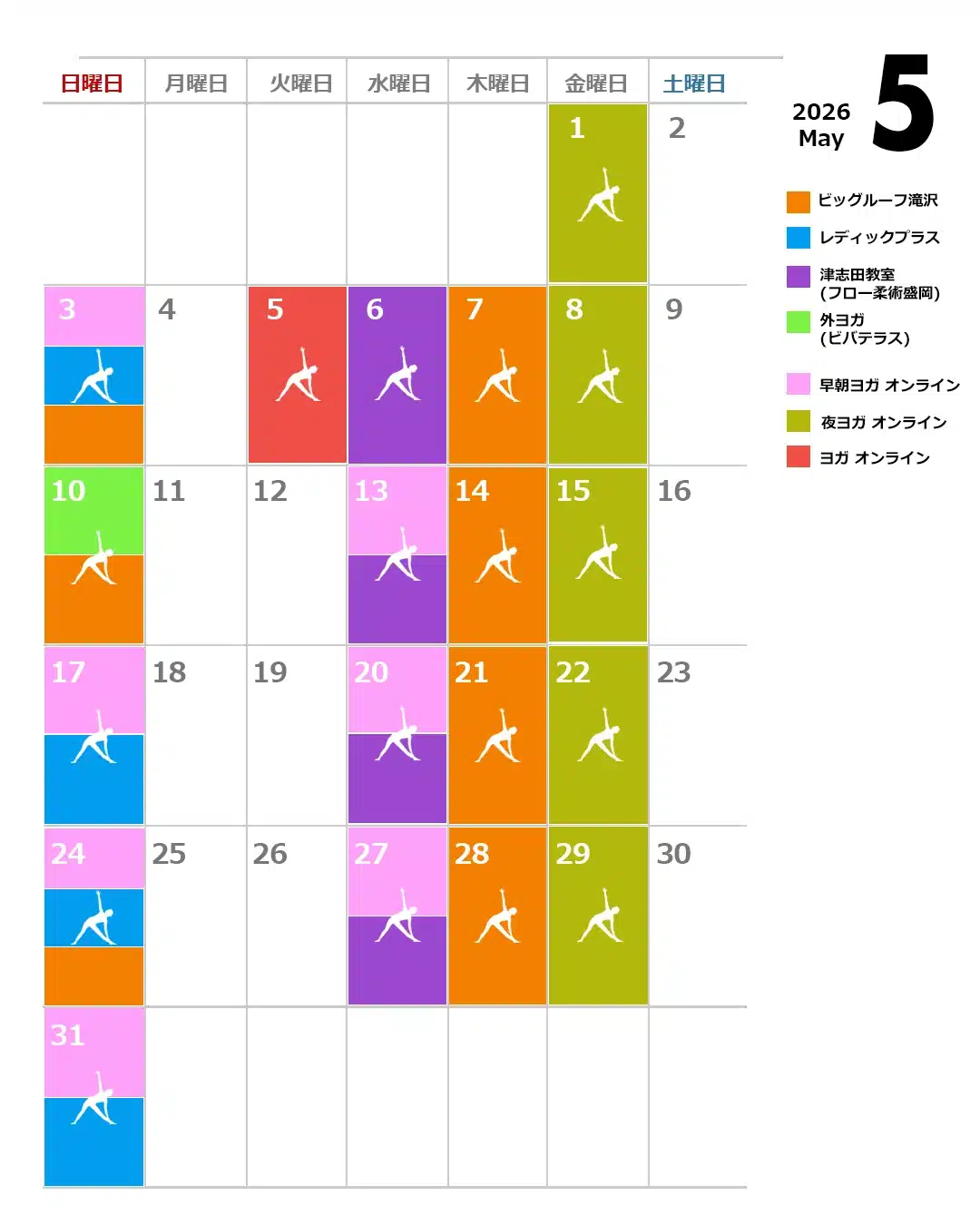 5月のヨガレッスンスケジュールになります